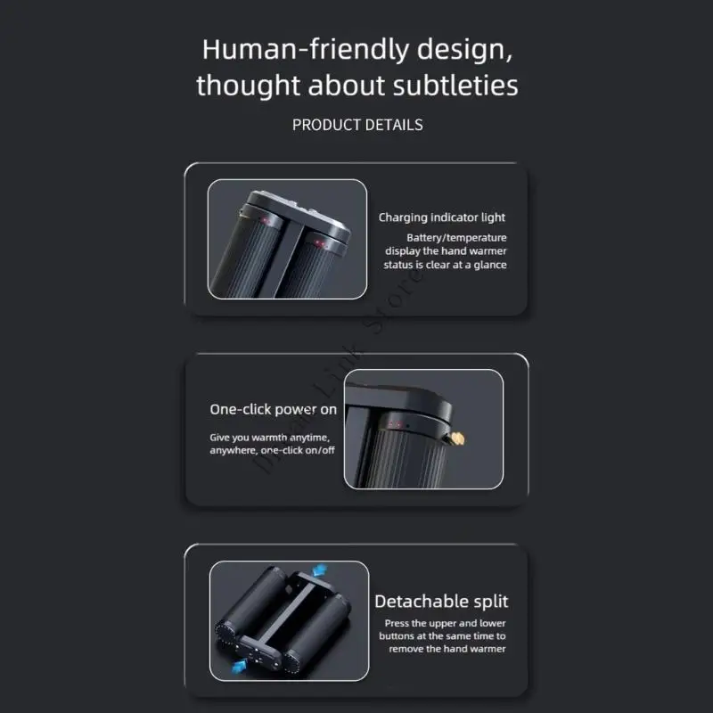 Crafted from ABS and aluminum, the rechargeable device features split body construction for easy cleaning, intelligent temperature control with overheating protective, and double output port for simultaneous hand warming and mobile device charging.